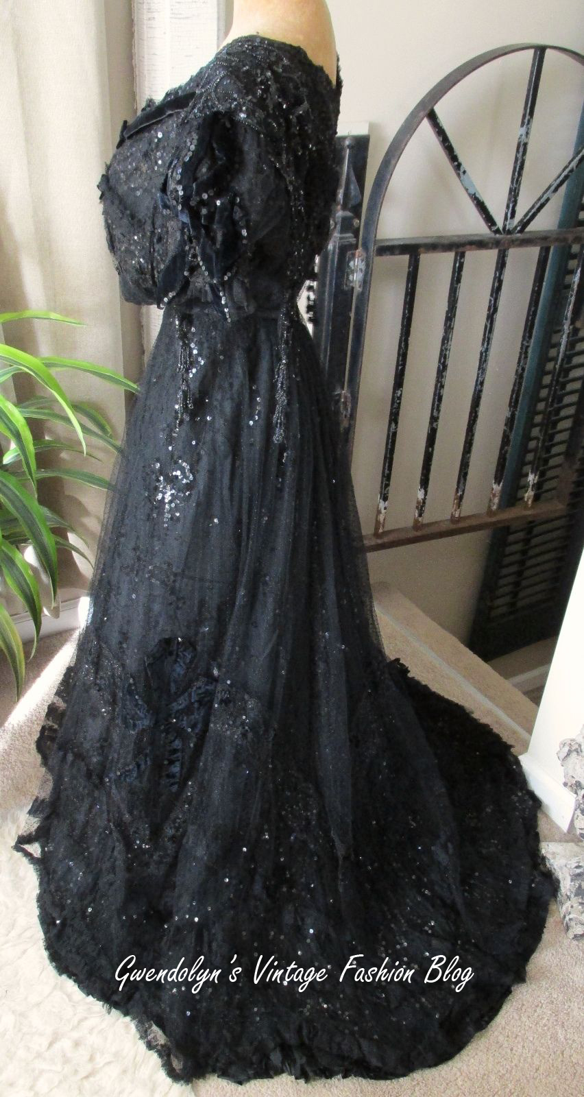 1905 Edwardian Black Sequin Gown