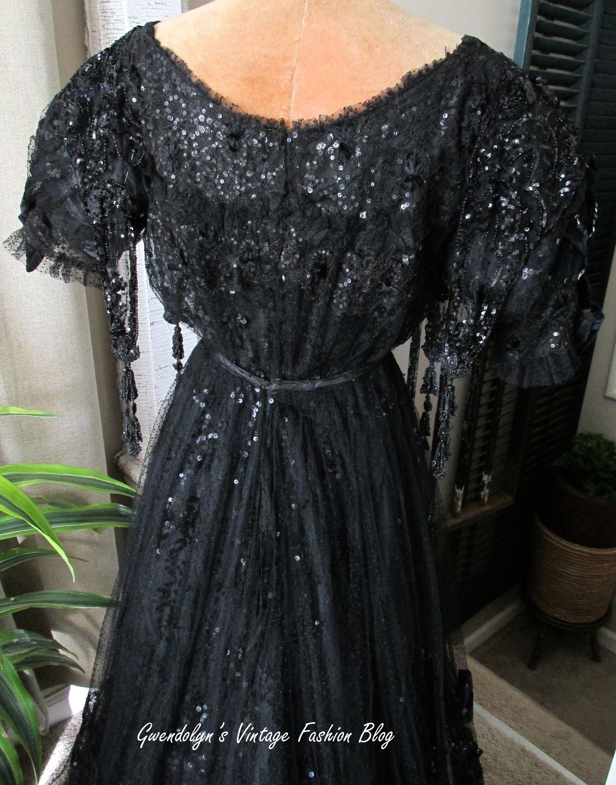 1905 Edwardian Black Sequin Gown