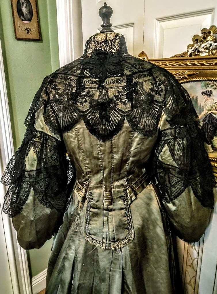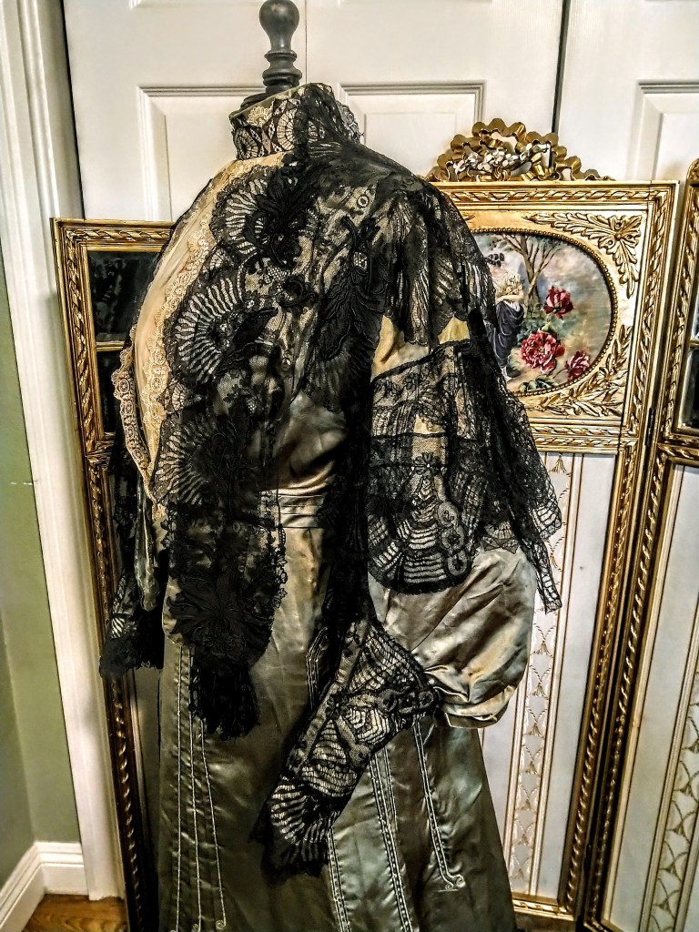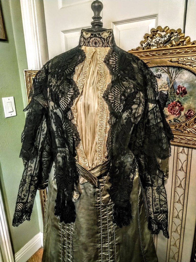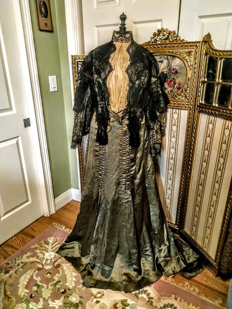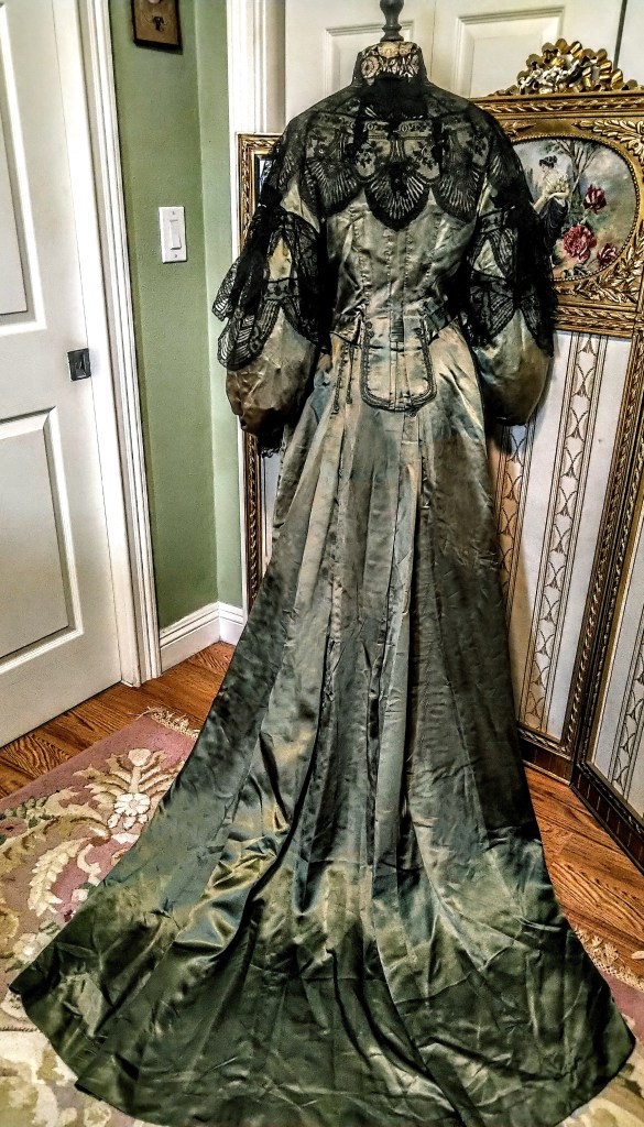 On this first week of spring, I am showcasing a circa 1903 Edwardian green silk and black lace gown by designer Fanny Gerson. Originally owned and worn by Wilhelmina Frederika Anna Elisabeth Marie (AKA princess Marie of the Netherlands) She must have been tall because the skirt is extremely long! Way too long for me, but what a beautiful piece nonetheless!