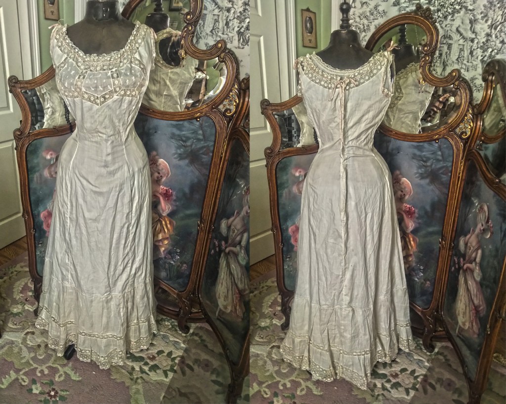 These were gifted to me and are from the estate of Theodore Francis Mackmiller of Iron River Wisconsin. T.F. Mackmiller was a wholesale liquor dealer in the early 1900s. His wife Alvena and and their daughter Lillian wore this clothing between 1890-1915. The clothing was rescued by my friend as they were found in a steamer trunk in the Mackmiller family home, about to be thrown away. Absolutely stunning pieces and I am so grateful to be able to preserve them! Below are several pieces of clothing, postcards, and family photos.