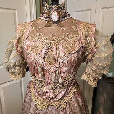 Another beautiful pink antique Edwardian gown! Made of silk. It has a beautiful print on it. I call it my Edwardian cinderella gown.