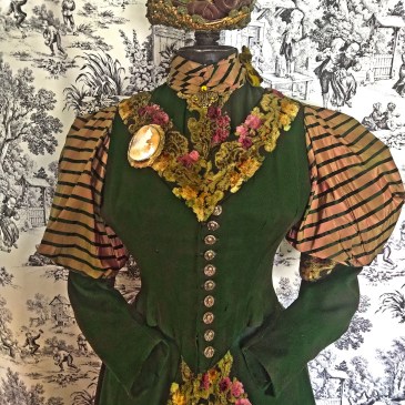 On this first week of spring, I am showcasing a circa 1903 Edwardian green silk and black lace gown by designer Fanny Gerson. Originally owned and worn by Wilhelmina Frederika Anna Elisabeth Marie (AKA princess Marie of the Netherlands) She must have been tall because the skirt is extremely long! Way too long for me, … More Fanny Gerson Gown worn by Princess Marie of the Netherlands Circa 1903